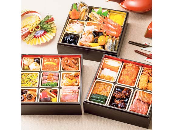 一の重は「新宿割烹中嶋」、二の重は「リストランテアルポルト」、三の重は「szechwan restaurant陳」。和・洋・中の名店巨匠シェフが監修した、元旦を彩るにふさわしい贅を尽くしたおせちです。