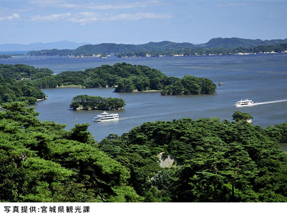 日本三景のひとつとしても有名な松島湾は260あまりの島がある多島海。美しい海に浮かぶ島々を見ることができる景勝地です。松島湾を約1時間かけて1周する遊覧船は、大きな船から松島の島々を楽しむことができるので、お子さま連れにもおすすめです。