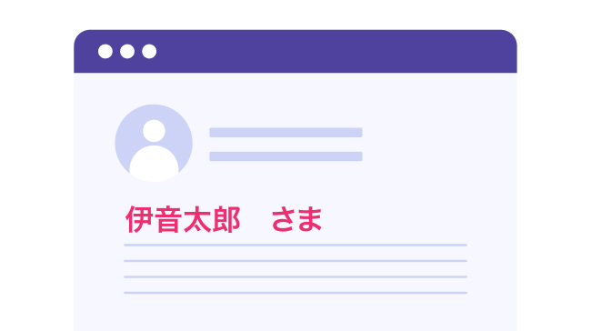 ・旧字体等、表示できない漢字が含まれている場合やメールの種類によっては、カナ氏名が表示されたり、または氏名が表示されない場合がございます。