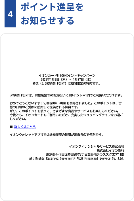 | honkaku@aeon.co.jp | カードお受取方法に関するお知らせメール |