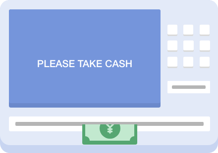 - ATMによっては、現地通貨・日本円のどちらで決済をするかご選択いただける場合がございます。日本円を指定した場合、その場でお支払い金額を確定できますが、当社で日本円に換算する場合に比べて割高になる可能性がございますのでご注意ください。