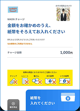 6.金額をお確かめのうえ、紙幣をそろえて投入口に入れてください。