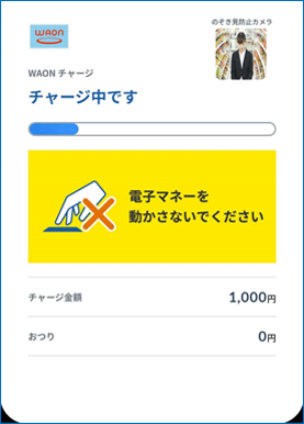 7.チャージ中です。マルチスキャントレイに乗せたWAONカード・スマートフォンは置いたままにしてお待ちください。