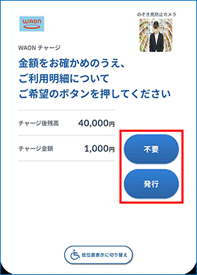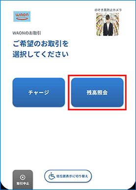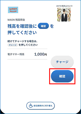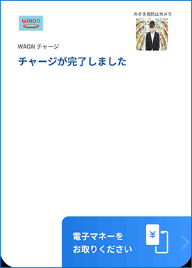 8.チャージが完了しました。マルチスキャントレイのWAONカード・スマートフォンを取ってください。