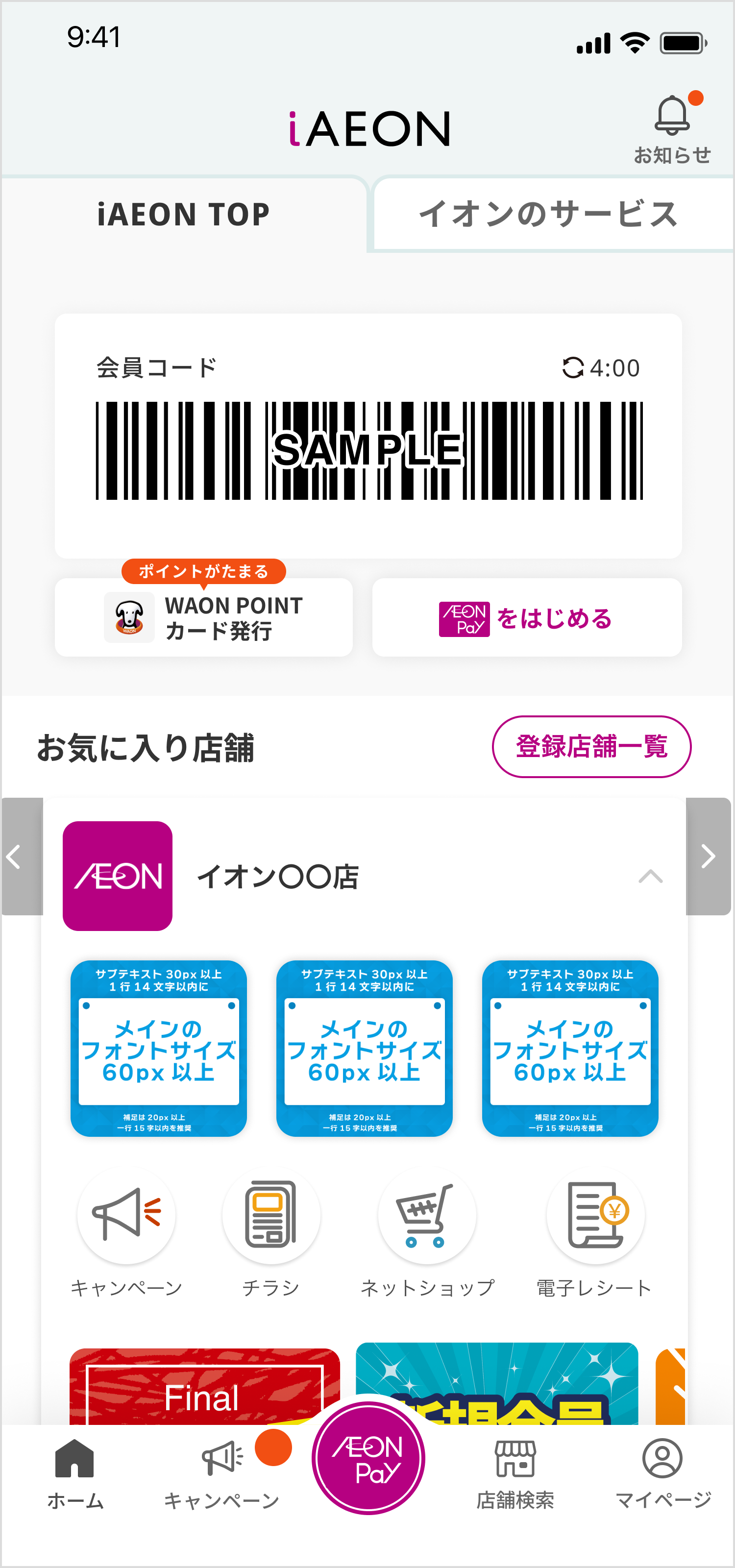 【重要なお知らせ】 iAEONアプリでのWAONタッチのご利用について