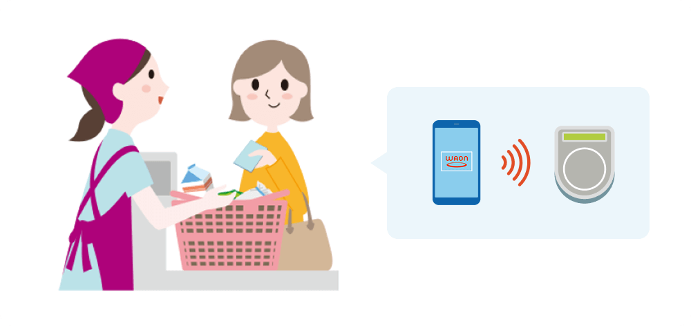 AEON PayでWAONが使えるサービスです。WAONカードと同様にスマートフォンを専用端末にかざすだけでお支払いができます。